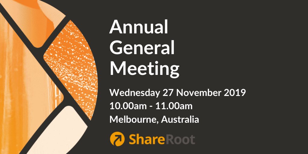 @sharerootco ICYMI: The $SRO AGM will be held this Wednesday in St Kilda, Victoria.