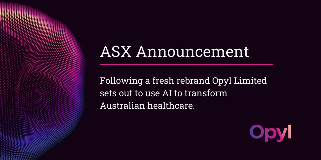 @sharerootco We are pleased to announce that ShareRoot (ASX: $SRO) has launched its new company name & brand Opyl Limited (ASX: $OPL) heralding its entry into the rapidly expanding global #digitalhealth & #artificialintelligence (AI) market. Access the announcement via opyl.ai/investor